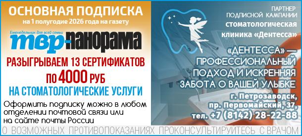 По итогам подписной кампании будут разыграны 13 сертификатов на стоматологические услуги от стоматологии "Дентесса" номиналом 4000 руб.